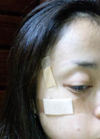 ヒマだったのでテープを貼ったまま病院の外に出てみたり、